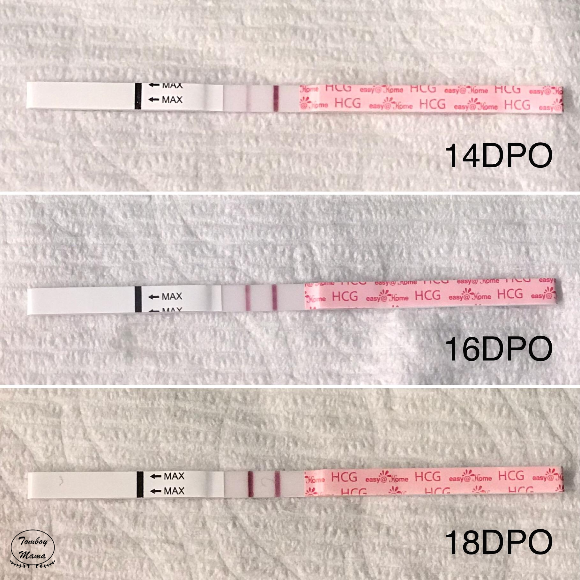 여하튼! 그렇게 집에 돌아와 덤덤하게 확인한 결과는 '두 줄'. 살짝 연한 '두 줄'이었다. (옆의 사진은 배란 후 14일, 16일, 18일의 *easy&home 임테기 진하기 비교 사진이다.) 웃긴 건, 마음이 벅차 방방 뛸 정도로 마냥 신나며 기뻤다기보다 (물론 기뻤지만!), 그 보다도 마음이 안정되면서 '그럼 그렇지, 홍양이 이렇게 늦었는데 두 줄이어야지.' 하는 생각과 '아직 마음을 놓기는 일러.'라는 생각이 들었다. 하아... 나란 사람. 임신 극초기에 대해 너무 많이 검색한 결과, 그 두 줄이 사라지는 사례들을 많이 접했기 때문이었다.