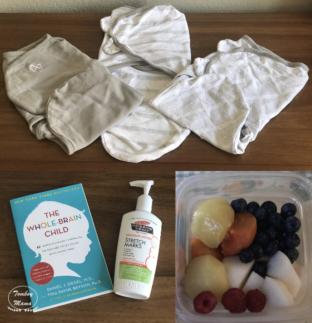 임밍아웃 이후에는 시누이에게서 스와들, Palmer's 튼살 크림, 육아 도서 (The whole-brain child)를 선물 받았다. 그리고 이후 아버님이 매일 아침 식사로 과일 모듬을 준비해주셨다! 일어나자마자 손수 종류별로 준비하신 과일들을 마주하니 '아 이런게 행복이구나~' 싶었다.