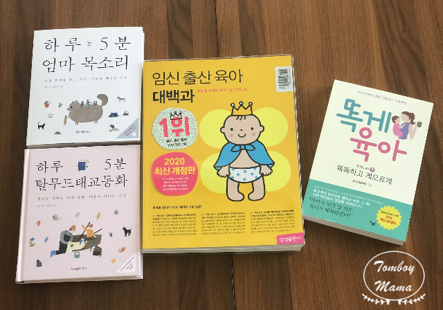 리스트는 1) 하루 5분 엄마 목소리, 2) 하루 5분 탈무드 태교 동화, 3) 임신 출산 육아 대백과, 4) 똑게 육아. 특히 똑게 육아는 아기 수면 트레이닝에 도움을 많이 받았다며, 시간 있을 때 (아기 나오기 전에 ㅎㅎ) 미리 읽어두라고 했다.